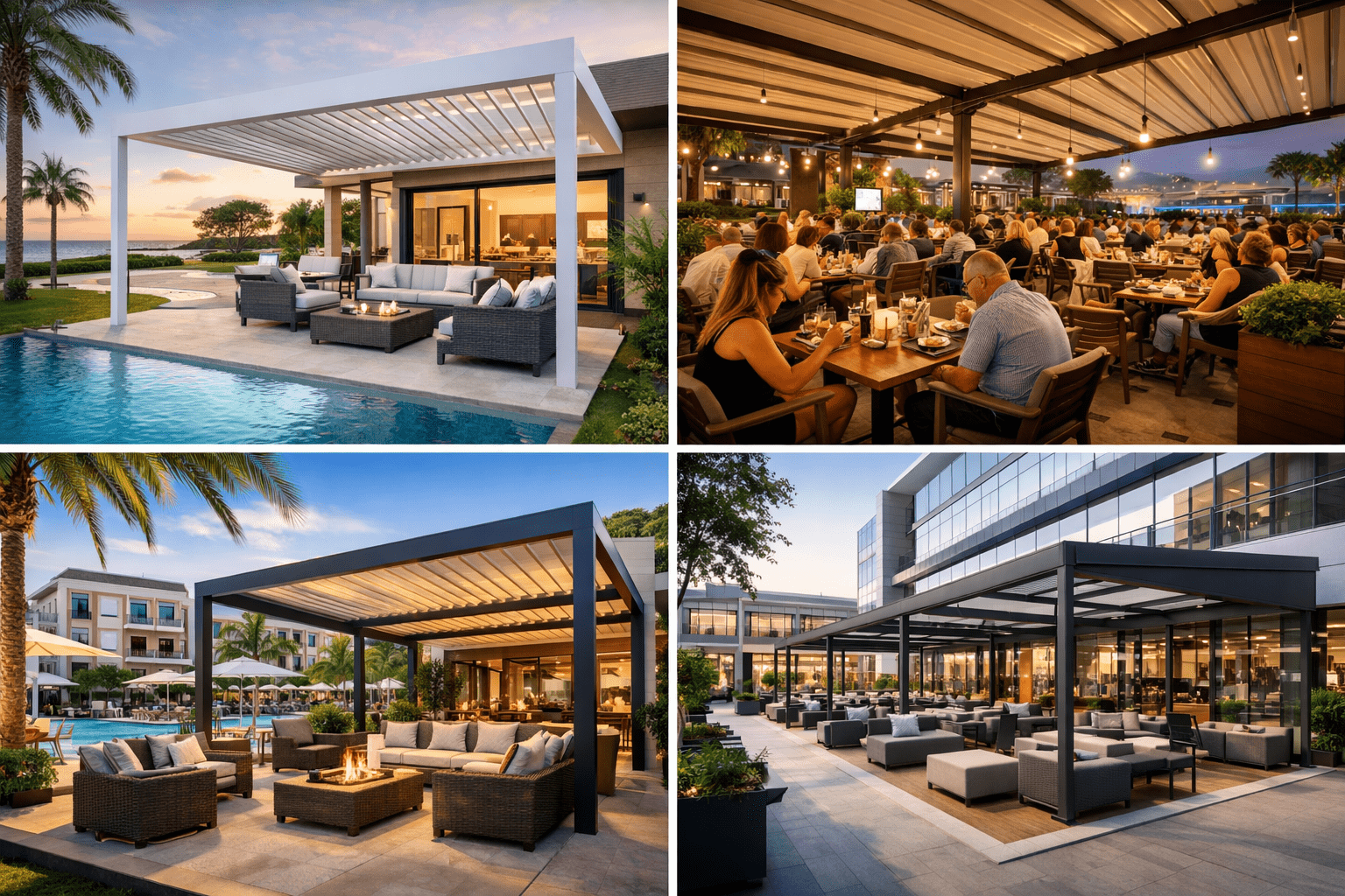 - Hotels & Resorts – Premium shading and enclosure systems that improve outdoor guest experiences.