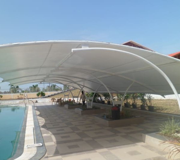 A concise definition: tensile shades are lightweight tensioned fabrics stretched over steel or aluminum frames that provide UV protection and wind-stable shade.